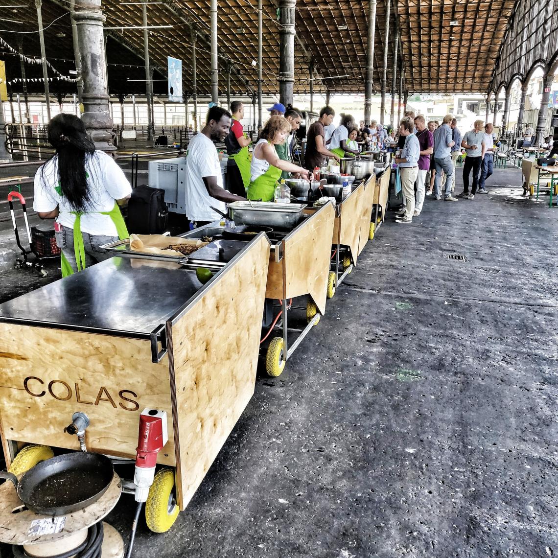 Du lundi au jeudi, une équipe de bénévoles roule ses cuisines mobiles sous la grande halle couverte de l’Abattoir, pour la transformer en cuisine de quartier. Le principe ? Le lunch prend la forme d’un buffet, et toute personne qui a du temps et de l'envie est invitée à venir donner un coup de main pour préparer un lunch sain et frais, à base d’invendus du marché. La DREAMKITCHEN propose du lundi au jeudi entre 12 et 14h un délicieux déjeuner et une soupe, le tout végétarien ou végétalien.
