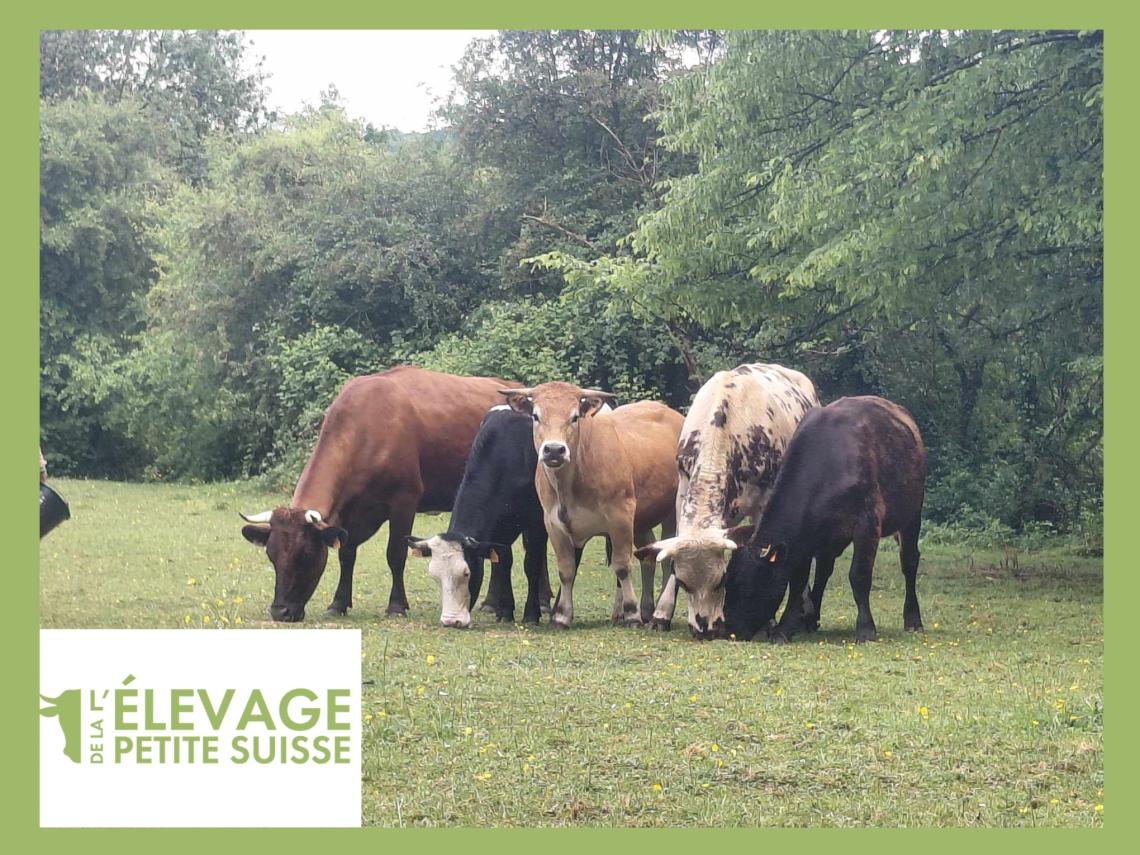L'élevage de la Petite Suisse, c'est à la fois un élevage artisanal bien particulier et une commercialisation en circuit court d'un vrai festival de saveurs en viande bovine. Ainsi, par passion, sur les prairies naturelles de Lompret, il y a des Angus, des Salers, des Limousines, des Highlands... Ce qui permet de proposer tout au long de l'année tantôt des viandes persillées, tantôt des viandes plus rosées, tantôt des viandes plus marbrées. Tout un festival de viande, mais toutes des viandes éthiques, avec un élevage respectueux de l'environnement et du bien-être animal et engagé dans le circuit court.