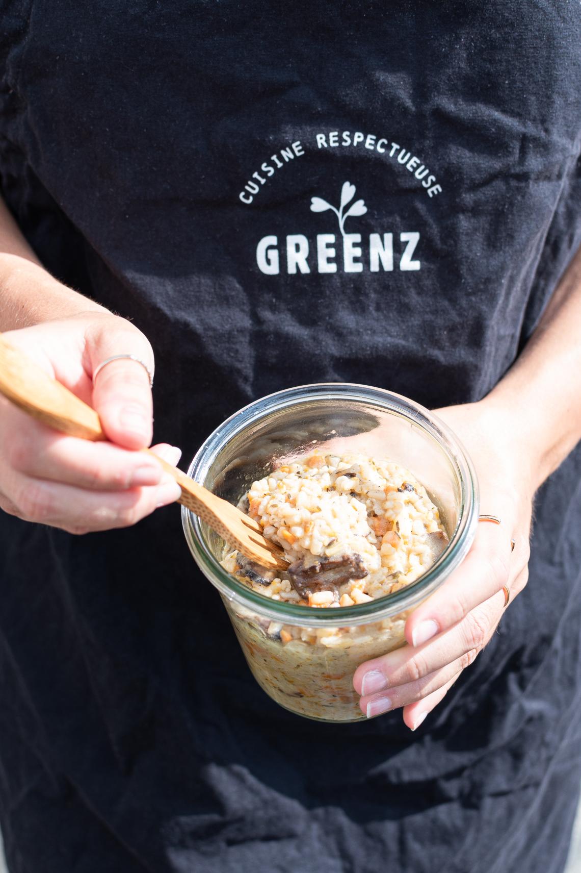 Greenz, c'est du prêt-à-manger bio dans de jolis bocaux. Des préparations saines, de saison, faites maison, issues de l'agriculture durable et locale. Leurs tartinables, salades fraîches, plats gourmands ou encore leurs desserts (dont leur bestseller, la mousse au chocolat) sont disponibles dans un large réseau de magasins Bio en Belgique. Greenz a également diversifié ses activités et propose un super service traiteur avec de délicieuses formules adaptées à tous types d’évènements et déjeuners d’entreprise (lunchs entre collègues, mariages, apéros entre amis, dîners en famille, pauses gourmandes...).