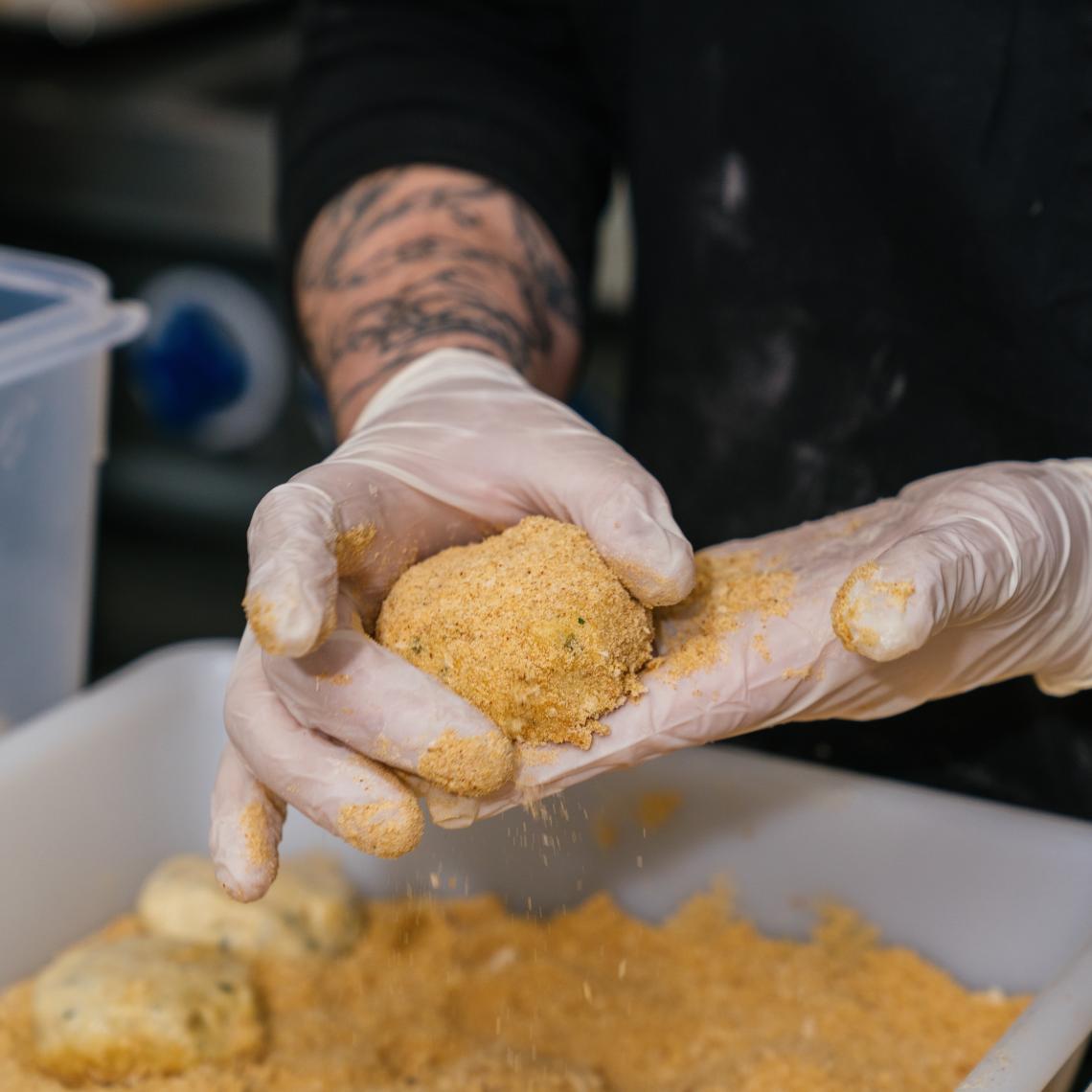 KROKET, c’est un bar à croquettes – street food et bistronomique – doublé d’une fabrique artisanale. Il propose toute une gamme de croquettes comme produit phare, mais pas seulement ; d’autres plats et produits sont aussi à la carte.