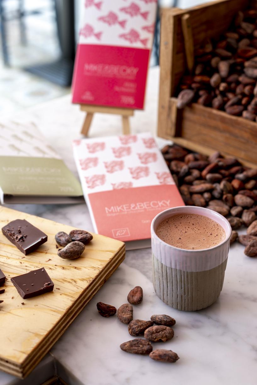 Chez Mike & Becky on croit à une approche honnête et transparente dans la fabrication du chocolat en petite quantité où la qualité et la pureté sont essentielles. Les fèves de cacao sont sélectionnées, torréfiées, cassées, vannées, broyées, conchées, tempérées, moulées et emballées à la main place Vanderkindere à Uccle.