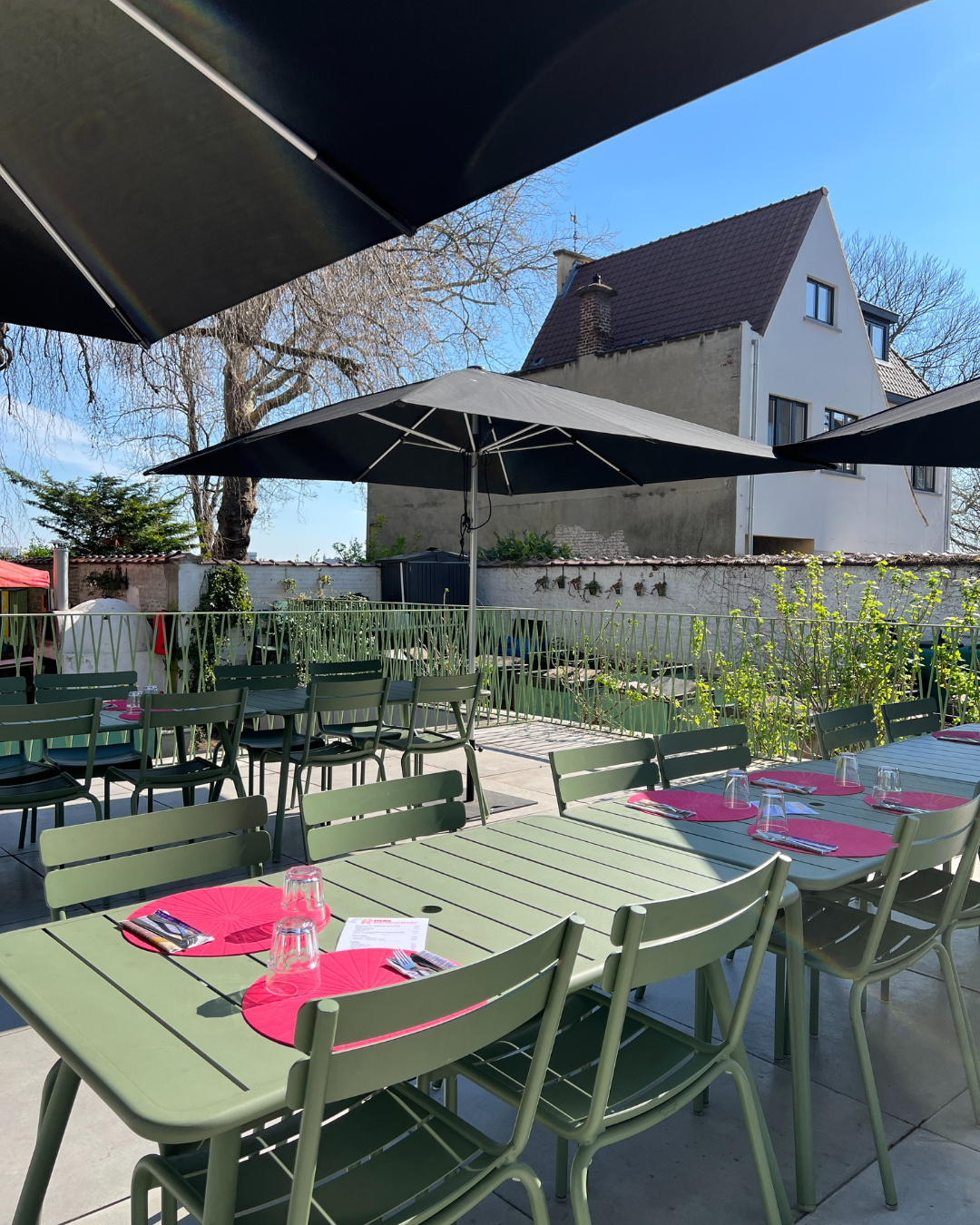 À la belle saison, la grande terrasse et le jardin, véritable havre de paix, raviront les Bruxellois en quête d’une pause déjeuner au calme. Au fond du jardin, il y a même une plaine de jeux pour les plus jeunes !