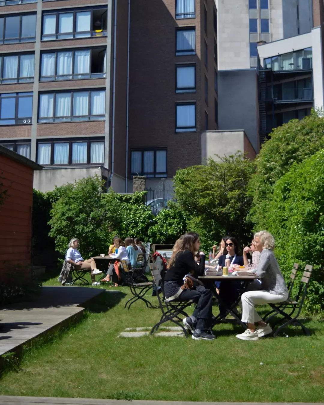 À la belle saison, la grande terrasse et le jardin, véritable havre de paix, raviront les Bruxellois en quête d’une pause déjeuner au calme.