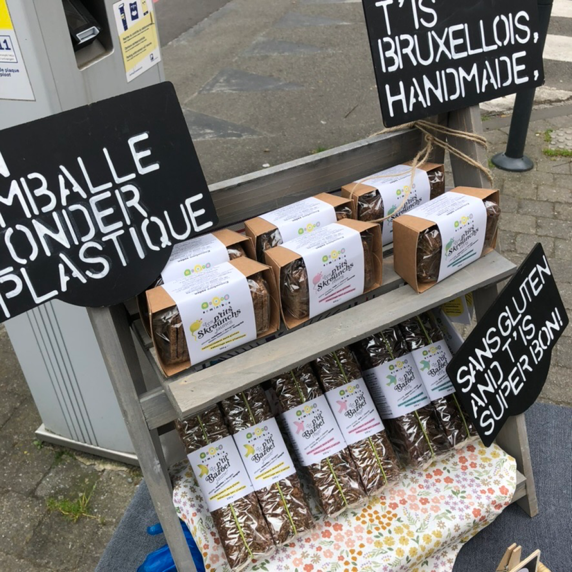 À chaque livraison, on récupère les p’tits Bazoefs invendus de la semaine précédente et on les rapporte au magasin la semaine suivante, après les avoir transformés miraculeusement en p’tits Skrounchs, les délicieux p’tits crackers qui prolonge le plaisir tout en évitant le gaspillage !