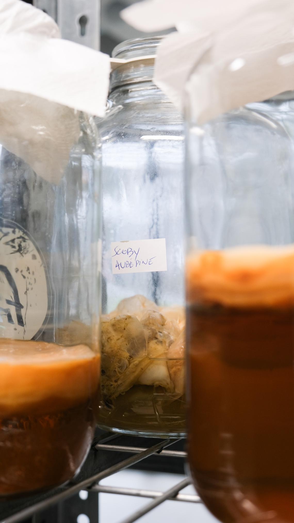 Nous proposons des boissons fermentées à base de thé, non-alcoolisées et aromatisées localement : avec tout ce qui pousse naturellement dans nos forêts.