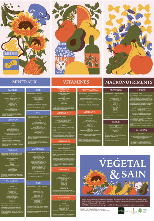 Ce poster pédagogique présente les principales vitamines et minéraux essentiels et leurs sources végétales. Conçu pour être clair, visuel et facile à lire, il permet de mieux comprendre comment couvrir ses besoins nutritionnels avec une alimentation majoritairement végétale.