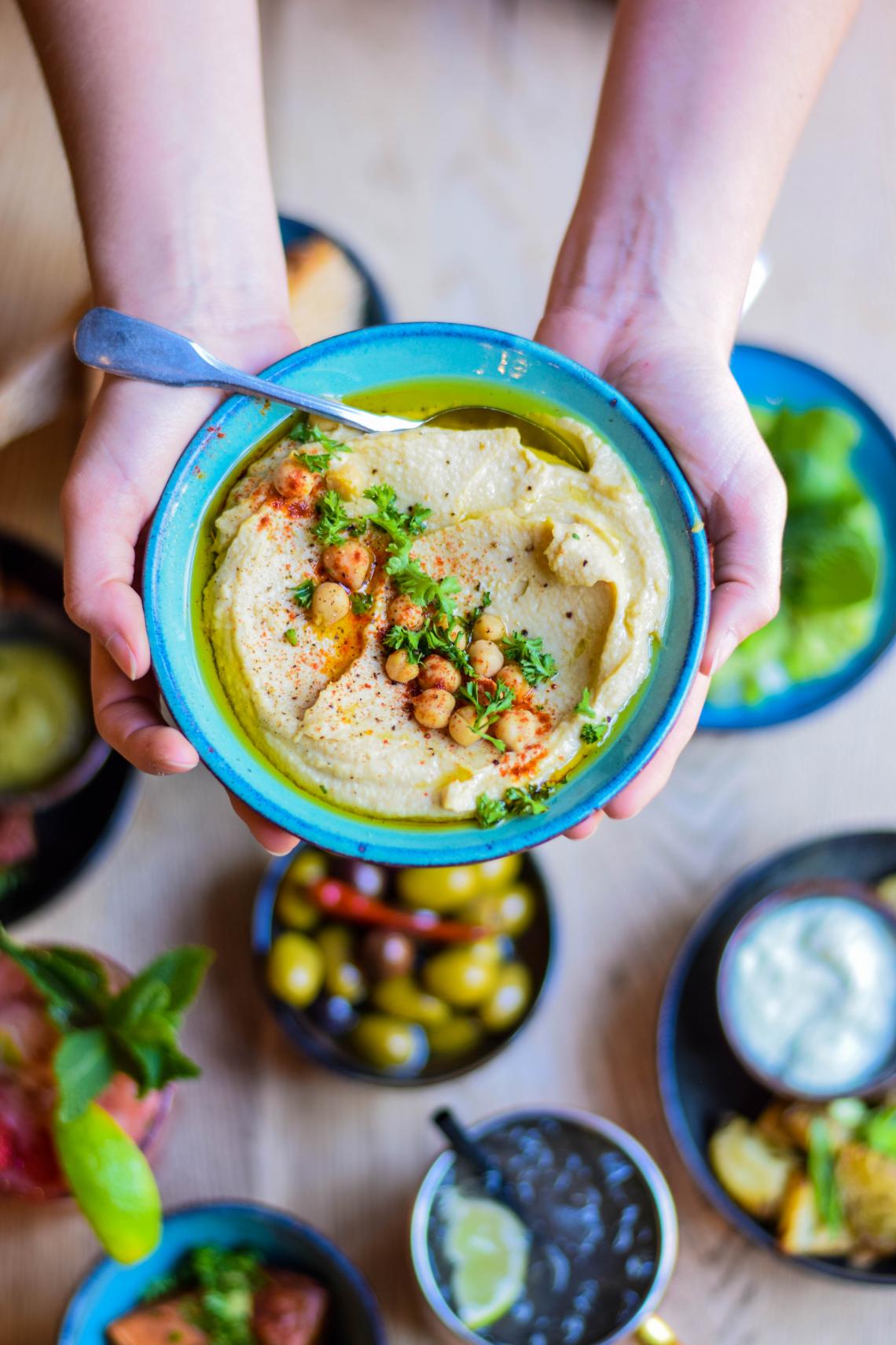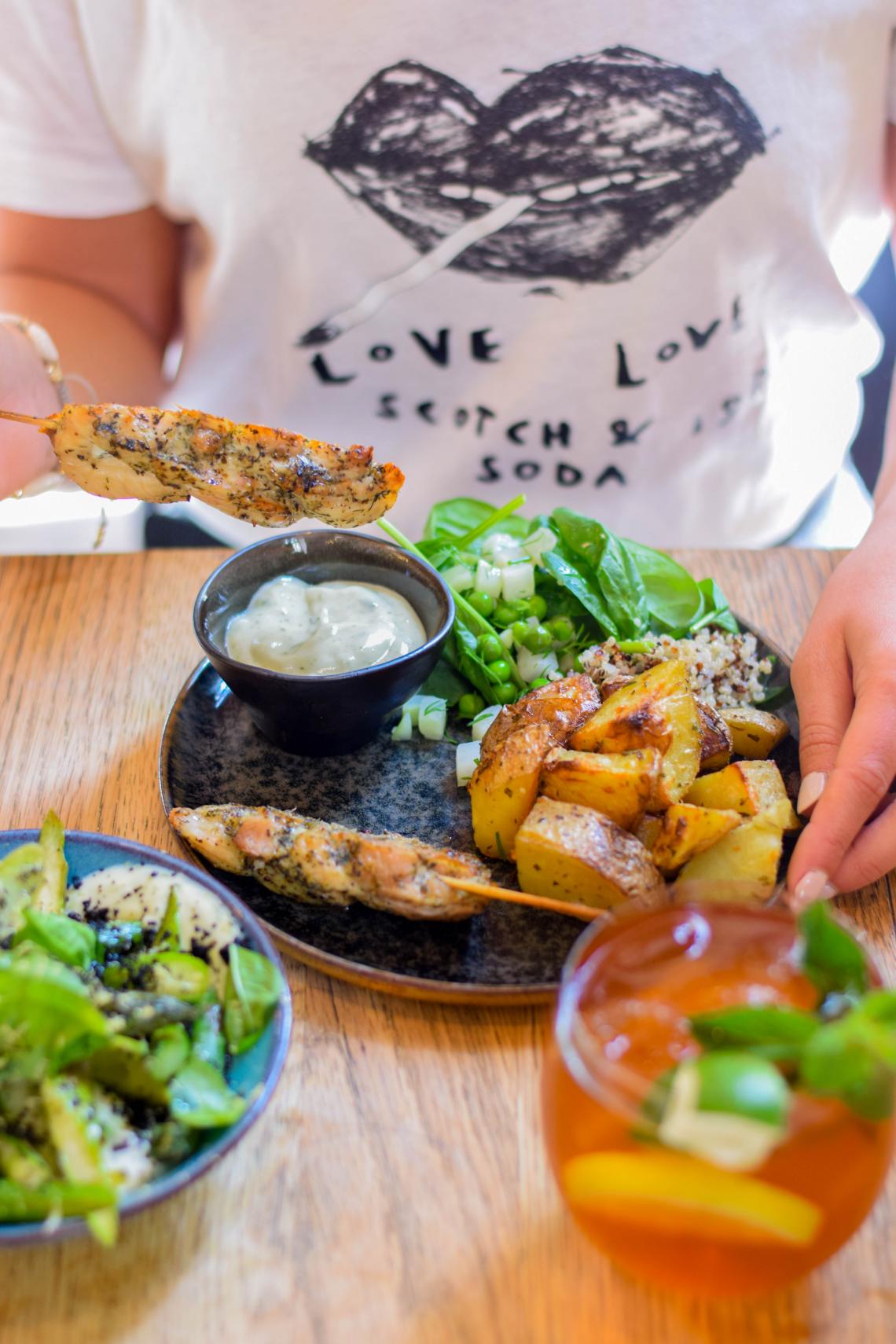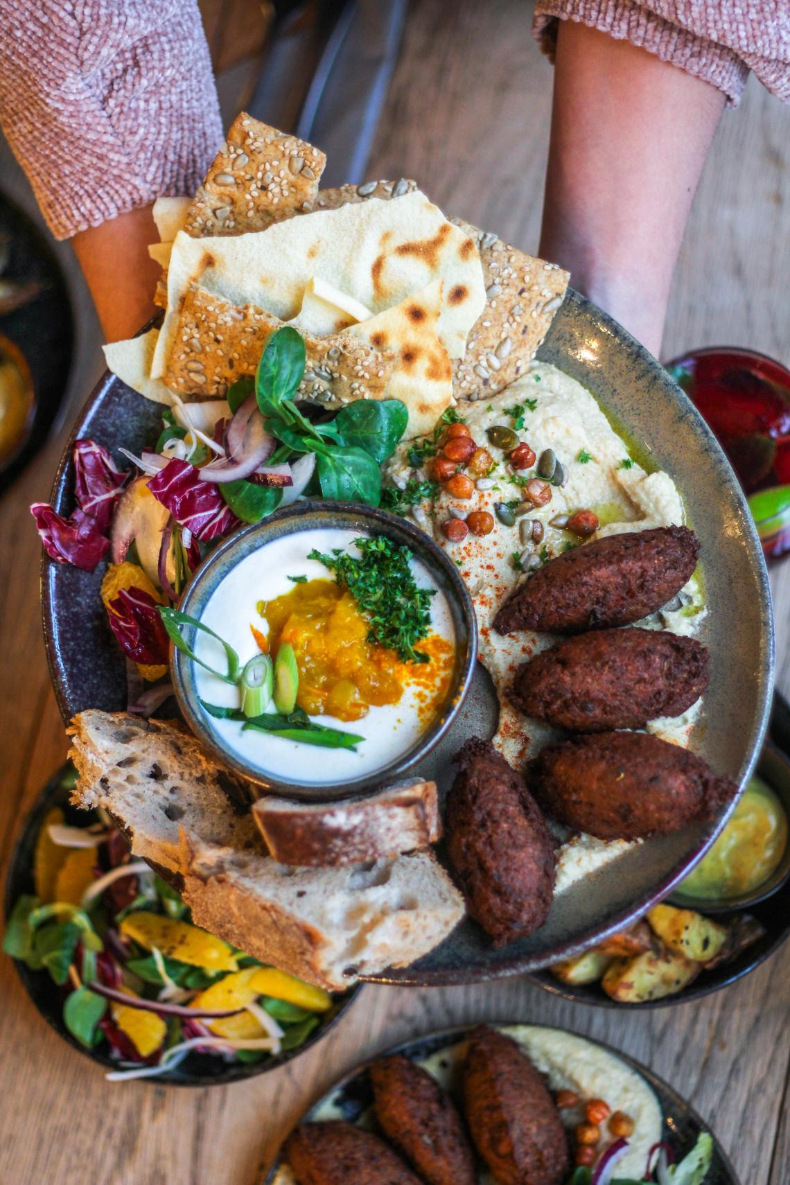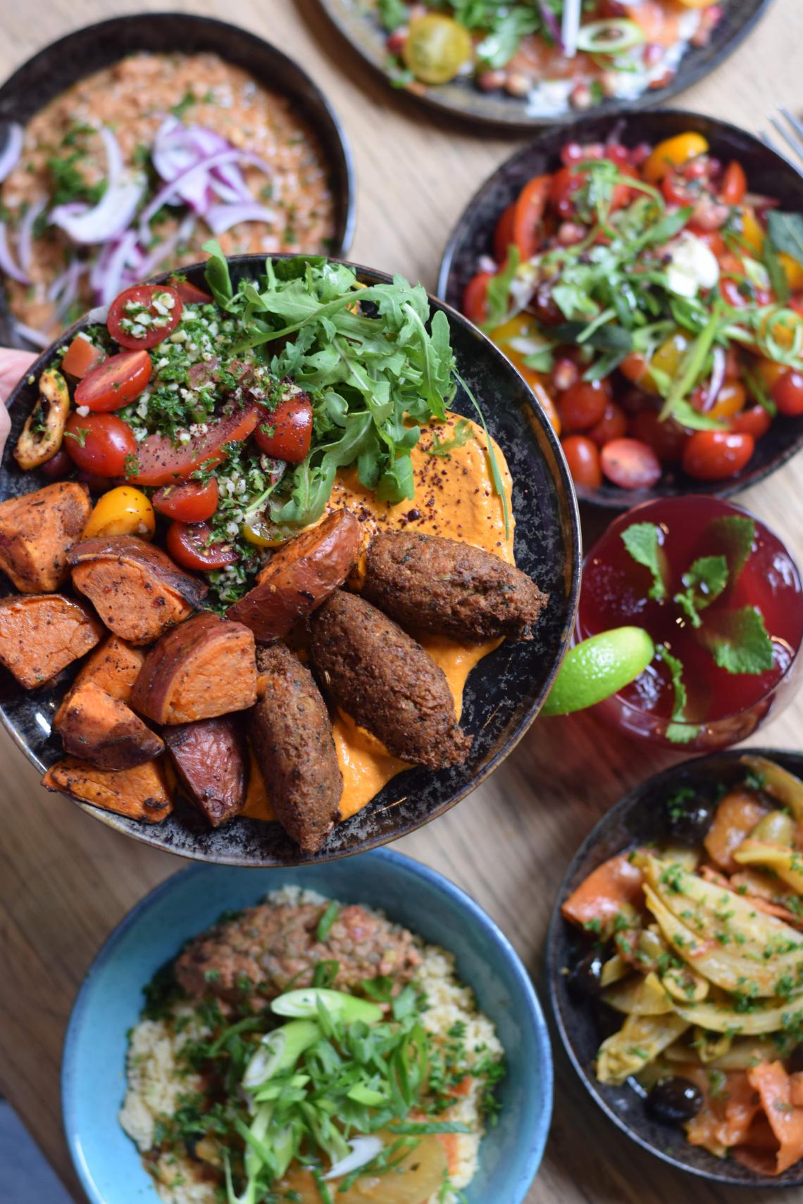 Het café serveert duurzame, gezonde en flexitarische voeding die in de halfopen keuken wordt klaargemaakt.