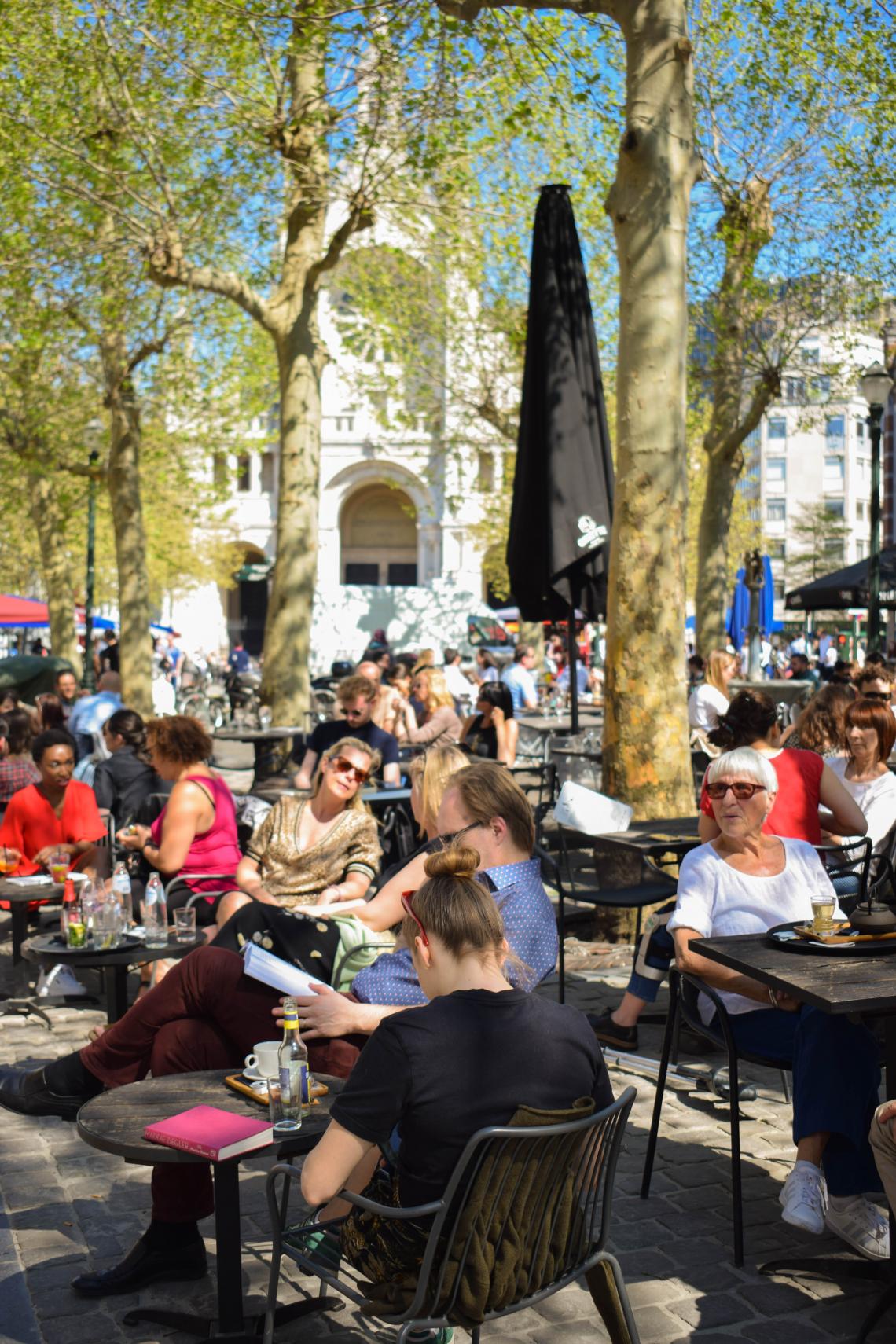 De Markten is een Nederlandstalig gemeenschapscentrum in het hart van Brussel. Het café van het centrum ligt aan de Oude Graanmarkt, tegenwoordig een autovrij plein met aangename terrassen onder de platanen. Ouders kunnen hier ontspannen relaxen met vrienden terwijl hun kinderen zich vermaken in de buitenspeeltuin. De indrukwekkende gevel dateert uit het begin van de 20ste eeuw, toen Val Saint-Lambert hier zijn Brusselse magazijn en verkooppunt vestigde. Het gebouw zelf dateert uit het midden van de 19de eeuw. Het café werd in 2017 volledig gerenoveerd. Oude meubels, spiegelwanden en een arsenaal aan planten zorgen voor een gezellige sfeer. De Markten is een ideale plek om mensen te ontmoeten, te praten, samen te eten, te werken of een boek te lezen.