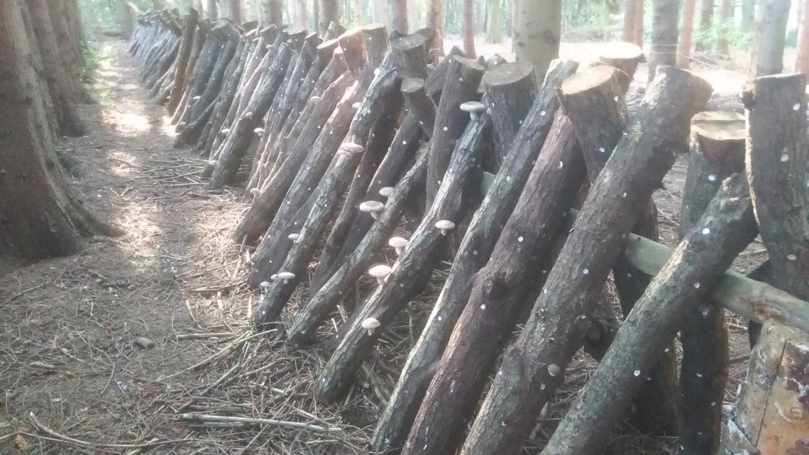 Die stammetjes ent ik het met broed van de shiitake paddenstoel. Nadien worden ze weggelegd in een bos. Na 1,5 jaar komen de eerste paddenstoelen tevoorschijn.