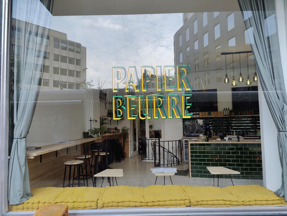Papier Beurre is een sandwich- en koffiebar met een wekelijks wisselende menukaart met vegetarische sandwiches en salades. Er is ook een ruime keuze aan huisgemaakt gebak verkrijgbaar en kwaliteitskoffie die in Brussel is gebrand.
