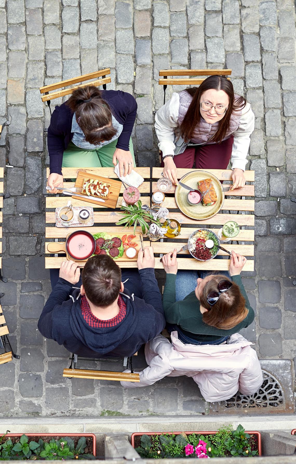 In The Sister Brussels Café vindt u een uitgebreid aanbod vegetarische en glutenvrije gerechten. Alle producten en dranken komen uit de biologische landbouw. Meestal gaat het om verse lokale producten die ter plaatse worden klaargemaakt. Er is een rijke keuze alternatieve natuurlijke dranken en bieren van kleine Belgische brouwerijen.